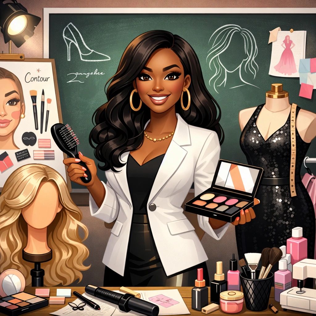 Here you’ll find practical education in hair, makeup, wardrobe styling, and the fashion industry—designed to help you grow and show up with intention. 💎